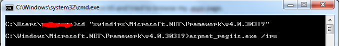 Type “aspnet_regiis.exe /iru” and press enter button.