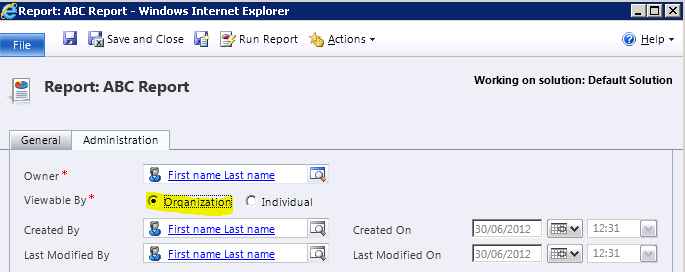 I have a custom SSRS report “ABC Report” in my CRM application.