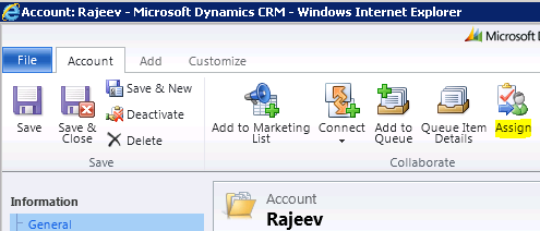In one of my requirement, I have to enable/disable “Assign” button on “Account” form based on one of my option set value (i.e.,accountcategorycode)