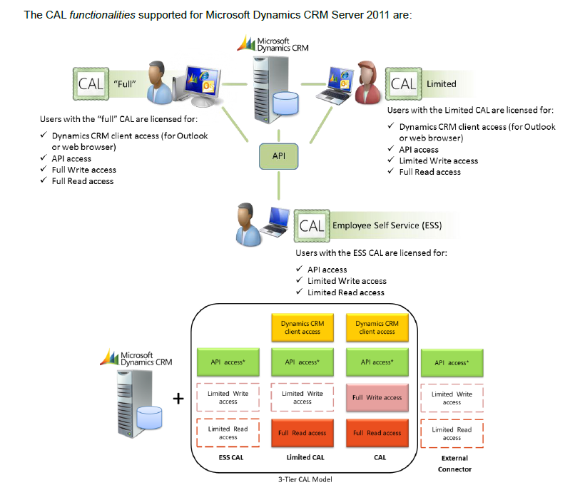 The functionality for an on-premise installation of Microsoft Dynamics CRM is controlled by 3 types of CAL