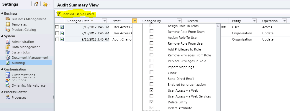 - Go to “Settings –> Auditing –> Audit Summary View”