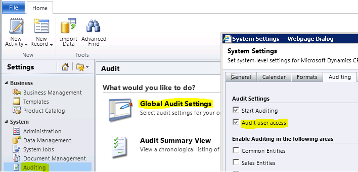 - Go to “Settings –> Auditing –> Global Audit Settings”