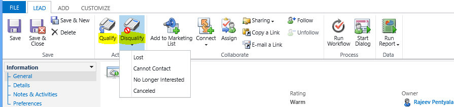 We have 2 ribbon buttons (Qualify and Disqualify).