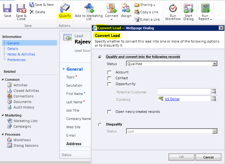 In UR 12, the lead conversion process has been redesigned. Refer below for lead qualify process before and after UR 12