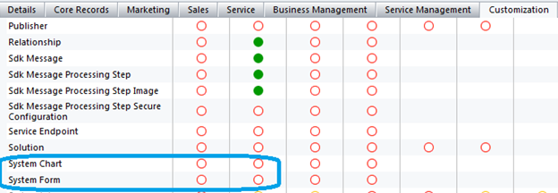 - Open security role –> Customization tab, set ‘System Chart/System Form’ access level to ‘none’