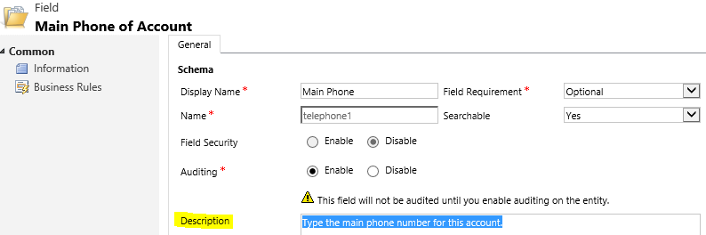 In CRM 2011, when you hover mouse pointer on a field you get field’s ‘