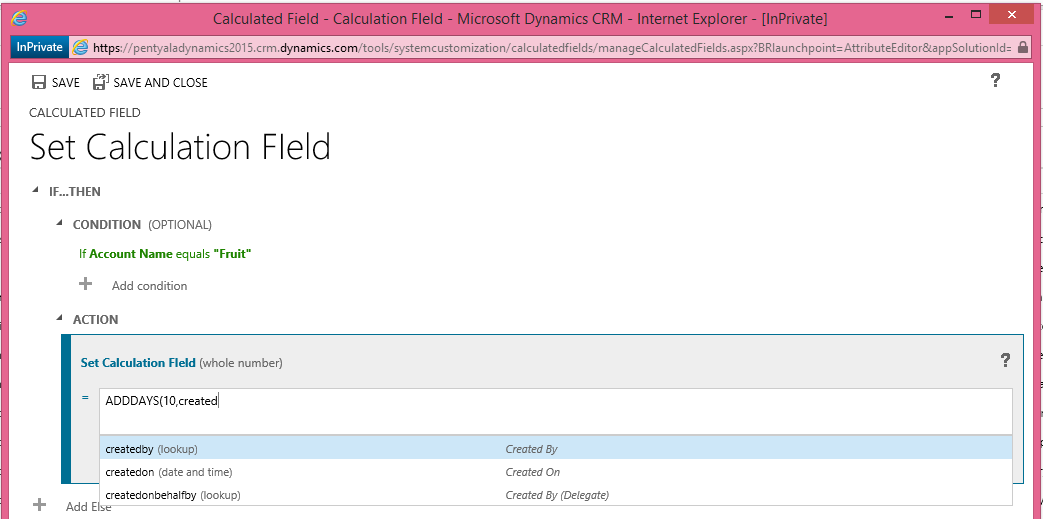 Assume you have a Date field “Purchase Date” and you want to calculate “Estimated Close Date” value based on another option set field ‘Type’