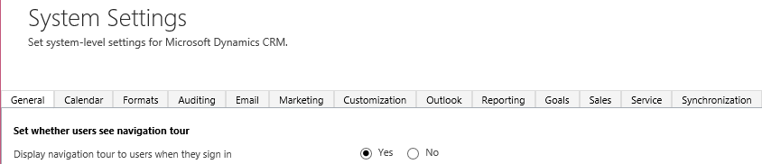 In CRM 2015, there is an option in Settings -> Administration -> System Settings whether to display Navigation Tour to User or not.