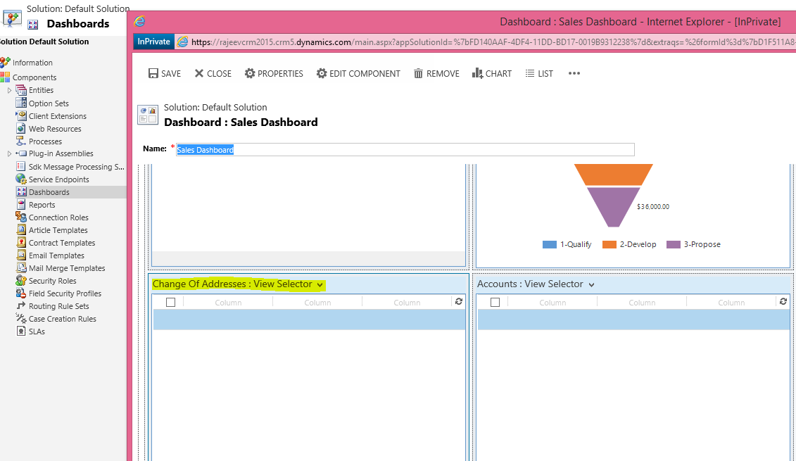 - So to get ‘Change Of Address’ entity on home screen, I added ‘Change Of Address’ entity view to the ‘Sales Dashboard’. (Note : Only 6 sections of Sales Dashboard visible on Tablet home screen)