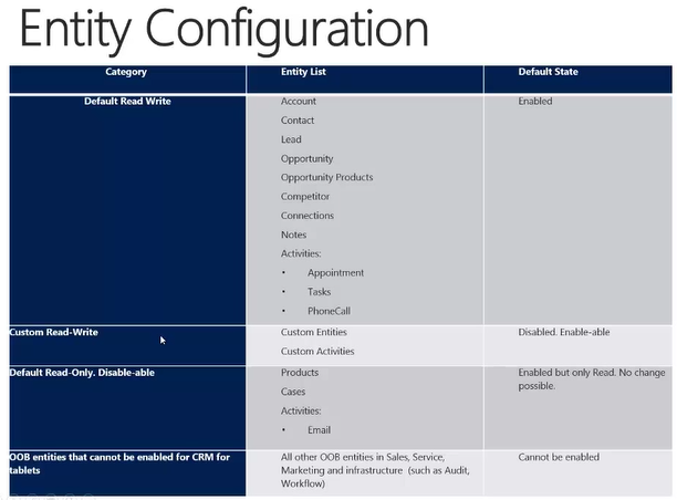 - All Custom entities can be configured to view on Tablet but not all OOB entities viewable on Tablets (Below are list)