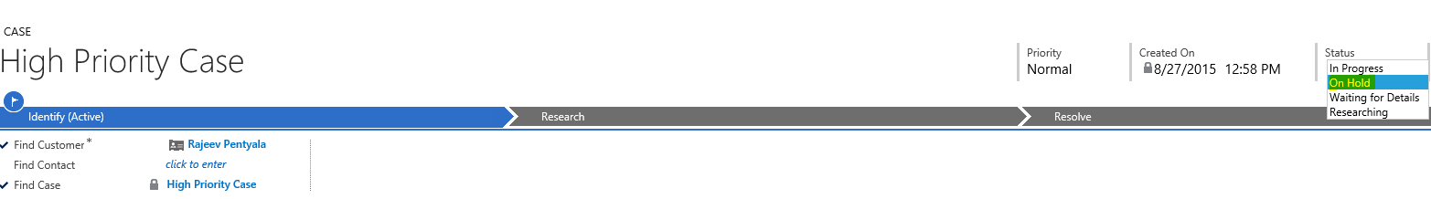 Case – Choose ‘On Hold’ status - See the Resolve in set to ‘Paused’