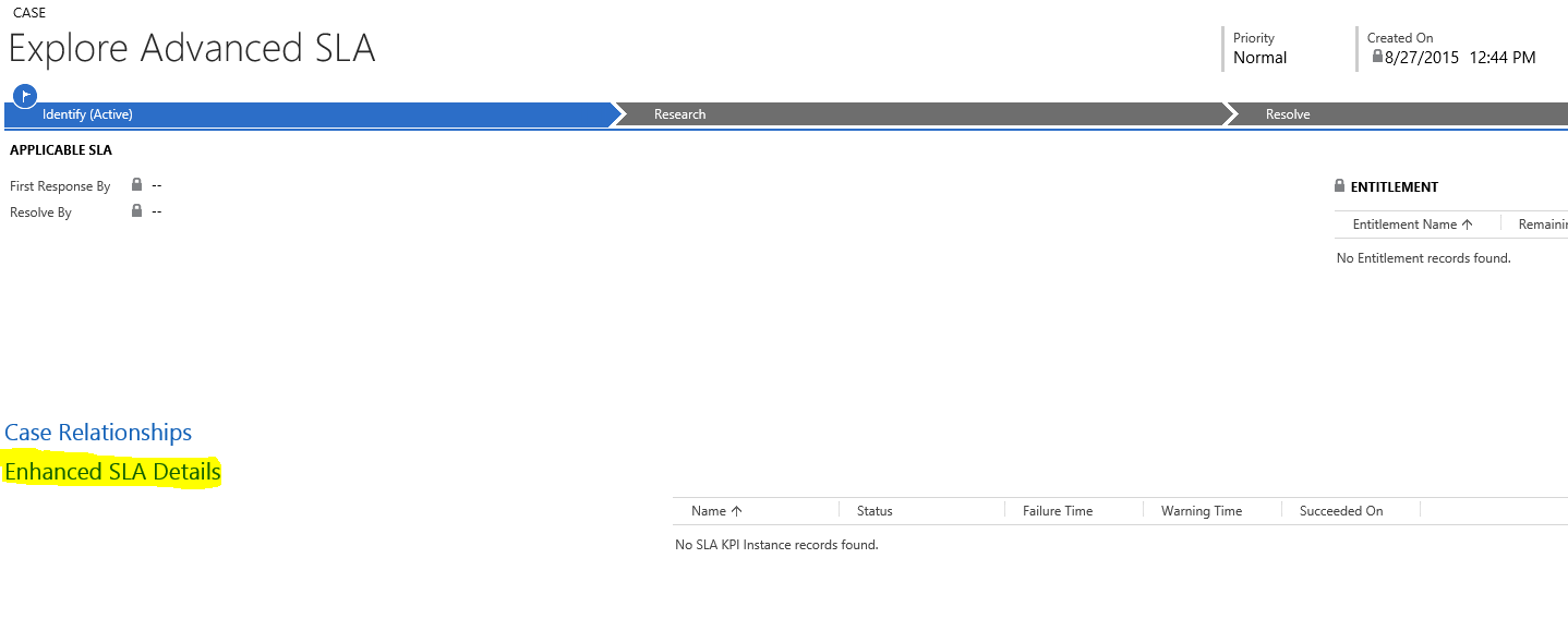 I was exploring ‘Enhanced SLA’ feature in CRM 2015. I created my first basic enhanced SLA with below steps