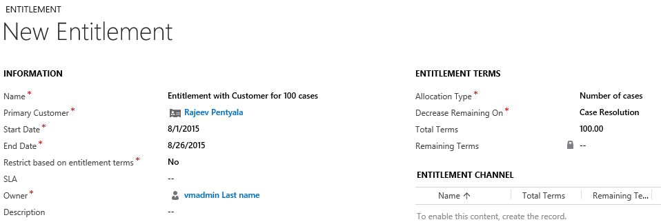 Note : If you don’t want to configure ‘Entitlement’ make to set SLA as Default which will be applicable for all Customers.