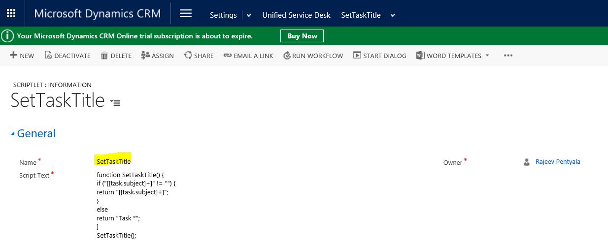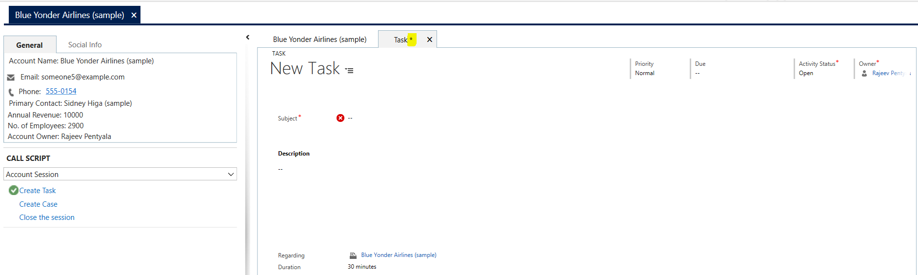 Once the Task gets Saved, Tab name changes to ‘Task.Subject’