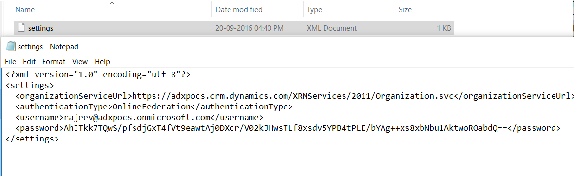 - Credentials provided in Configuration screen will get saved under “../App_Data/settings.xml” file.