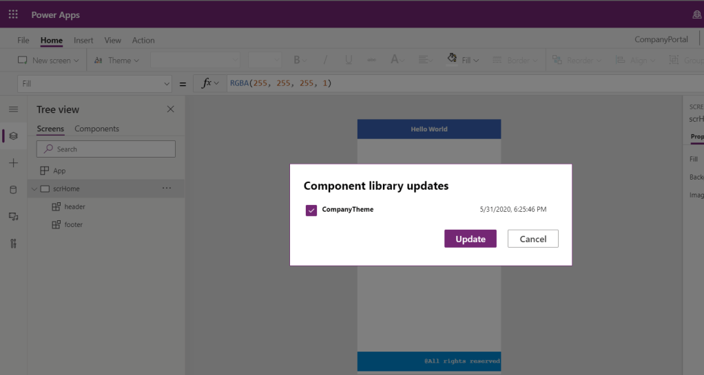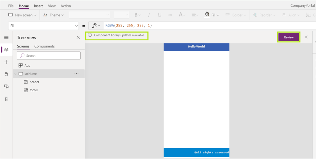 Lets modify the ‘Component Library’ and see how it reflects in the Canvas App.