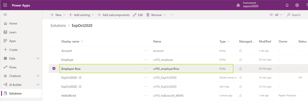 I’ve an ‘Employer’ entity and a BPF name ‘Employer flow’ with 3 stages named ‘Basic Details’, ‘Address’ and ‘Experience’.