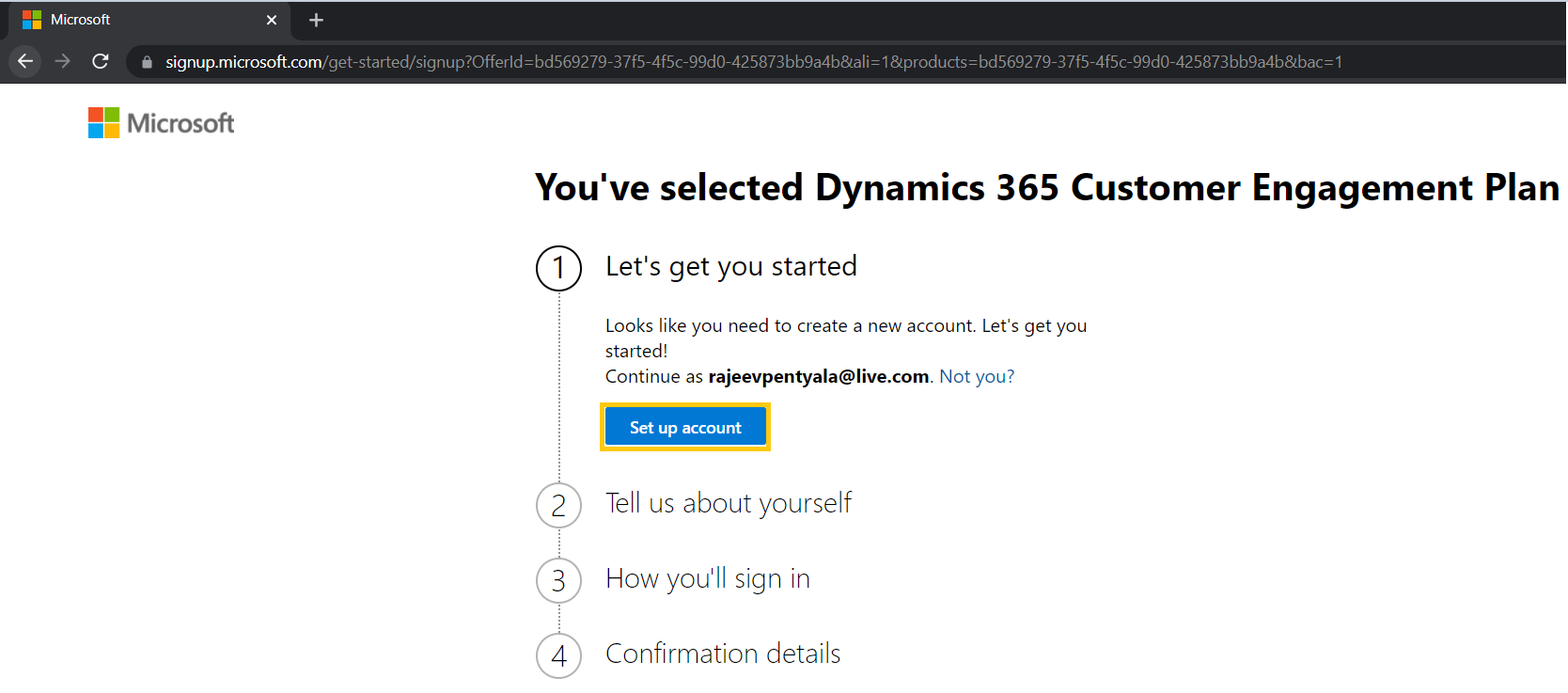 Alternately you can directly use this link to go to the above Sign up page directly by passing new portal.