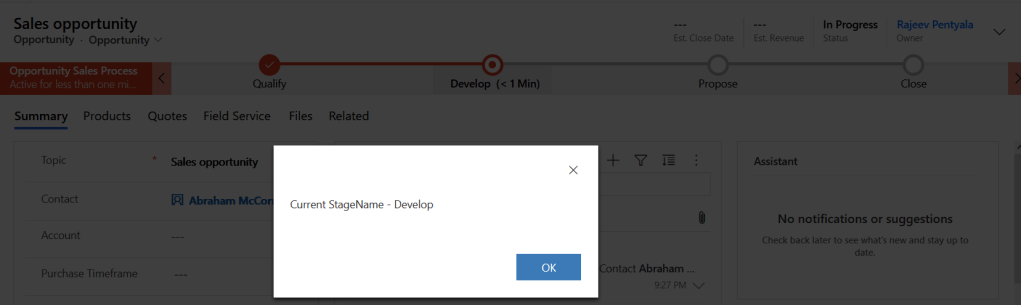 - Below is the example of script on Opportunity form.