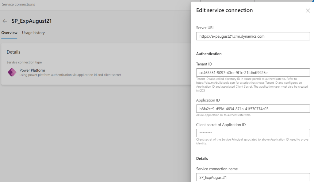 - Make sure the ‘Service Connection’ configured properly with Azure App Registration details (i.e., Tenant ID, Application ID and Client Secret).