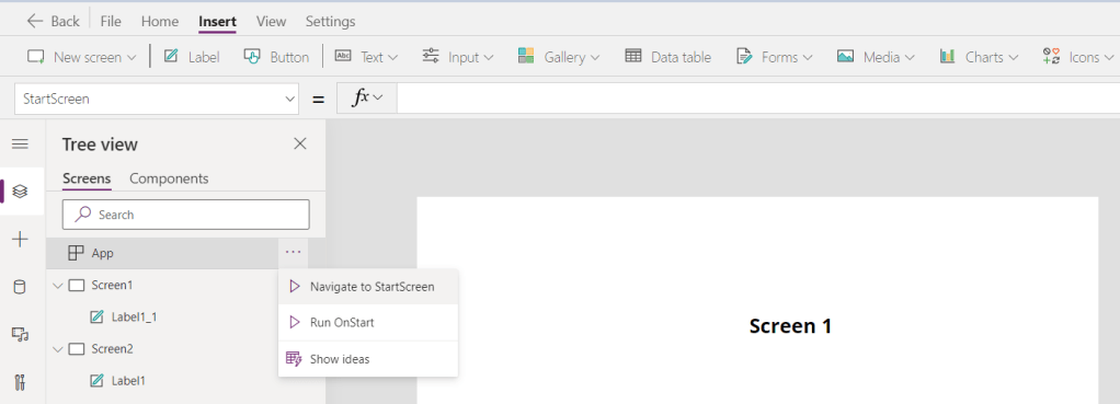 - Using the Navigate function in the OnStart property has been retired. (Refer below screen as App throws warning if you have Navigate function on OnStart)