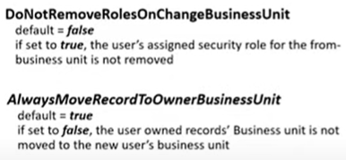 New Organization Settings while Changing the User’s Business Units: