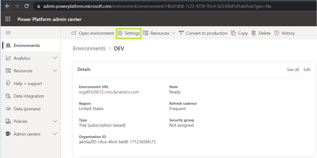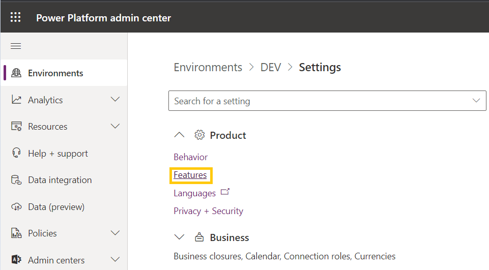 - Go to Settings -> Features and enable “Enable Power BI quick report visualization on a table (preview)” option.