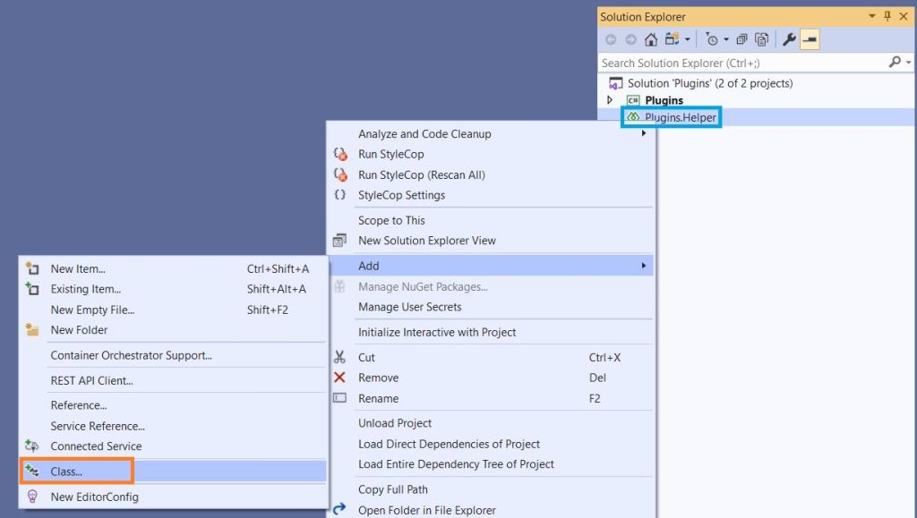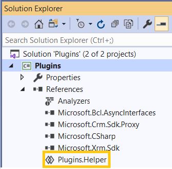 - ‘Plugins.Helper’ Shared Project, looks as below in the Solution Explorer.