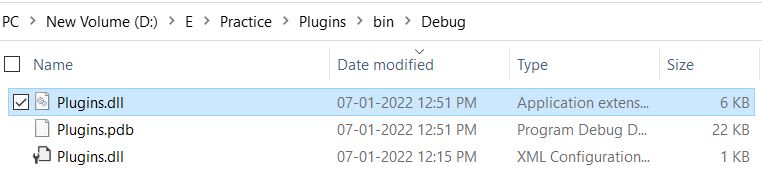 - Build the Plug-in project and you would get the ‘Plugins.dll’ in bin/Debug folder.