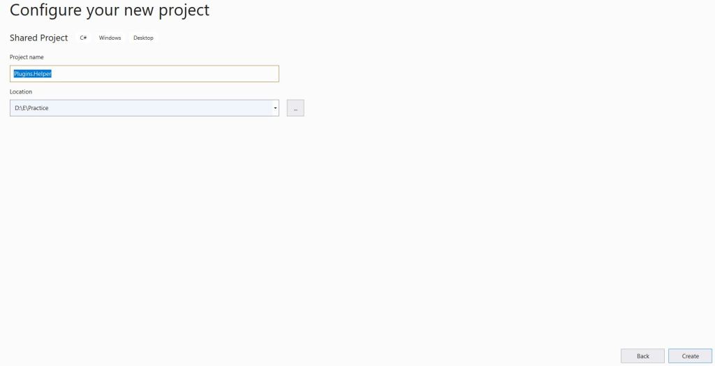 - Now lets add a ‘Shared’ Helper project which our Plugin project would refer.