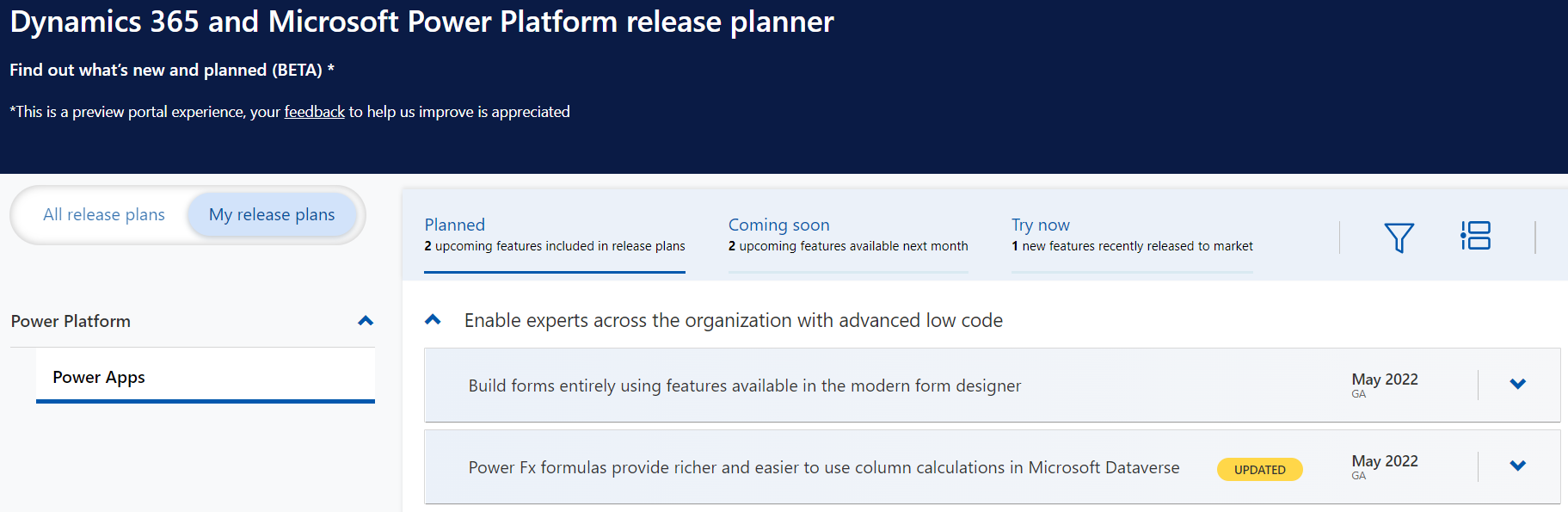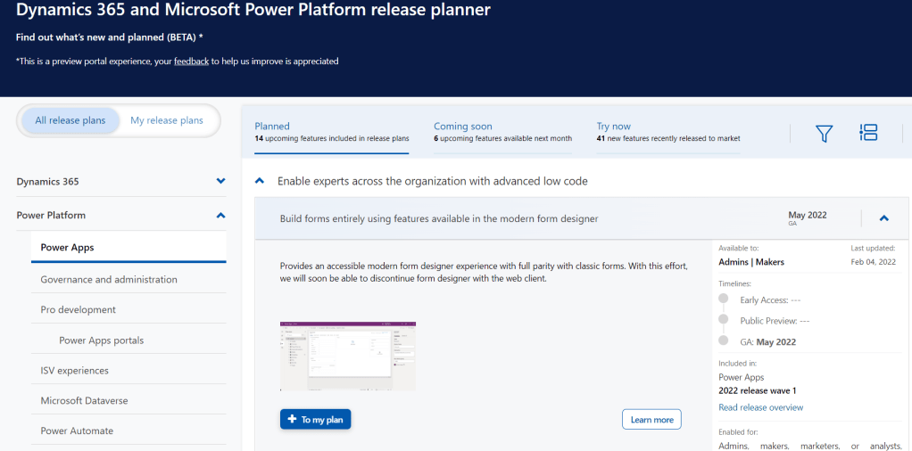 As the Dynamics Release Wave 1 2022 is being deployed this month, if you are planning for an upgrade of your existing system, Release planner tool (BETA) helps you to organize and plan for New and Upcoming features.