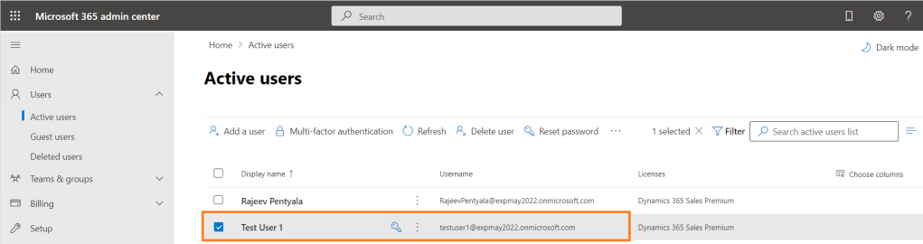 - I’ve created an User named ‘Test User 1’ to send the notifications to.