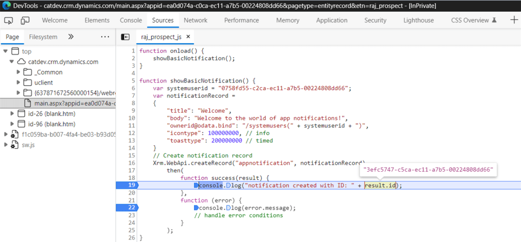 - If you don’t specify “ownerid@odata.bind” in ‘notificationRecord’ object, notification will go to the User who created Notification.