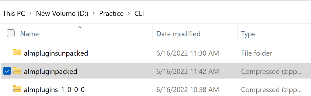 - Once the command executed, you would find a new zip folder with name (i.e.,almpluginpacked.zip), specified in ‘pack’ command.