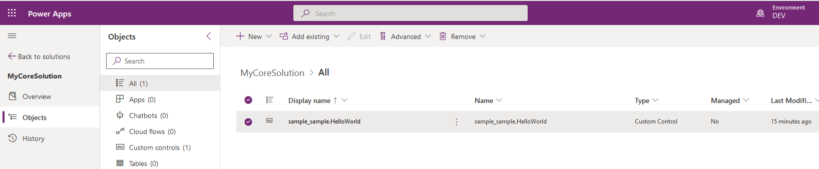 - Now I want to include the PCF control which we just built to my “MyCoreSolution” solution and deploy to another environment.