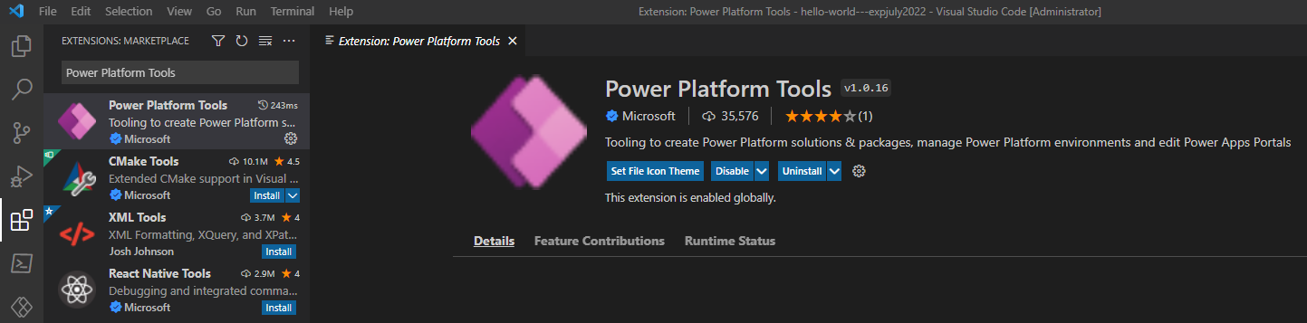 - Open a Visual Studio Code and make sure you installed Power Platform Tools extension.