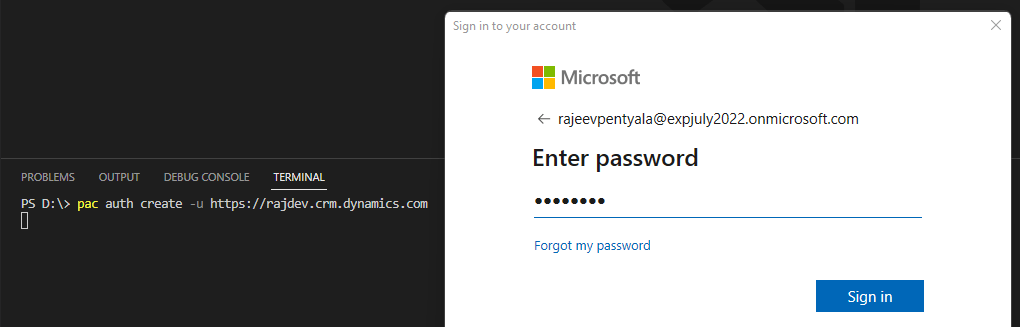 - As a first step, you need to connect to your Dataverse environment by executing following command.