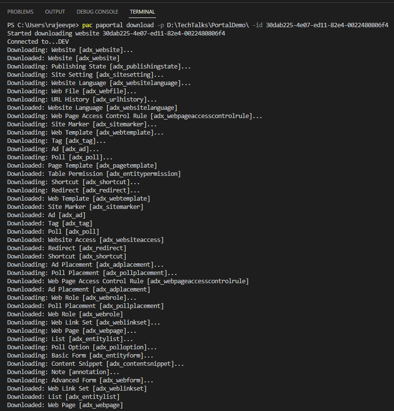 - pac paportal download –path [PATH] -id [WebSiteId]