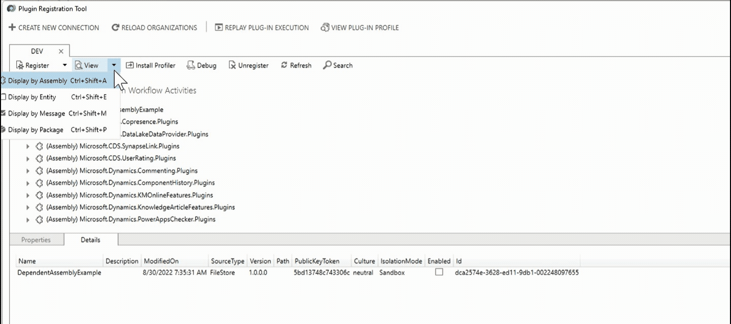 - To update the Plugin Package, in the ‘Plugin Registration Tool’, go to View ->Display by Package.