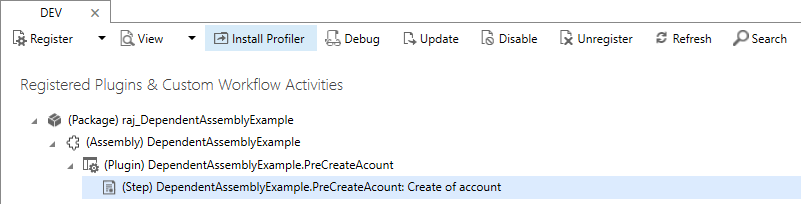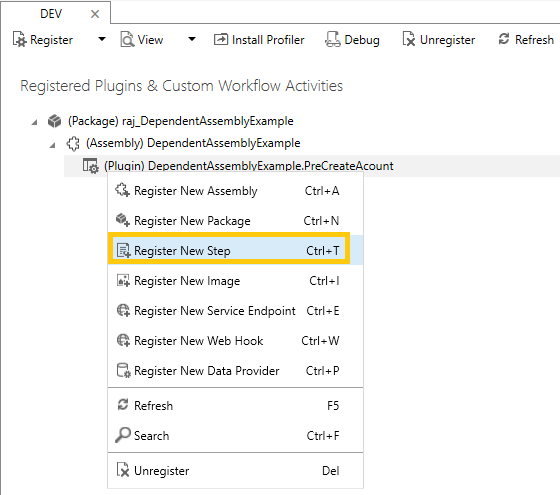- With dependent assemblies, rather than register an individual .NET assembly, you will upload a NuGet Package that contains your plug-in assembly and any dependent assemblies.
