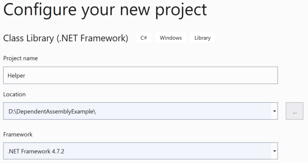 - Add a new ‘Class Library’ project. I named project as ‘Helper’.
