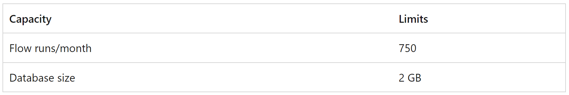 - There’s a limited capacity provided because this environment is meant for development and test purposes, not for production use. The capacity limits are: