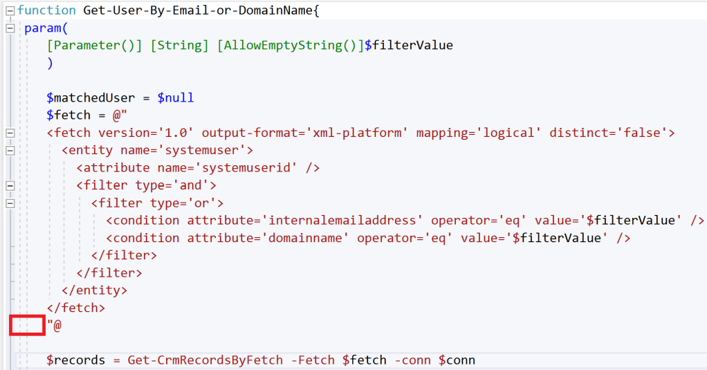 - Issue was with the format of ‘FetchXML’ being passed to Get-CrmRecordsByFetch operation.