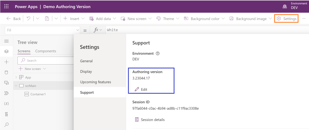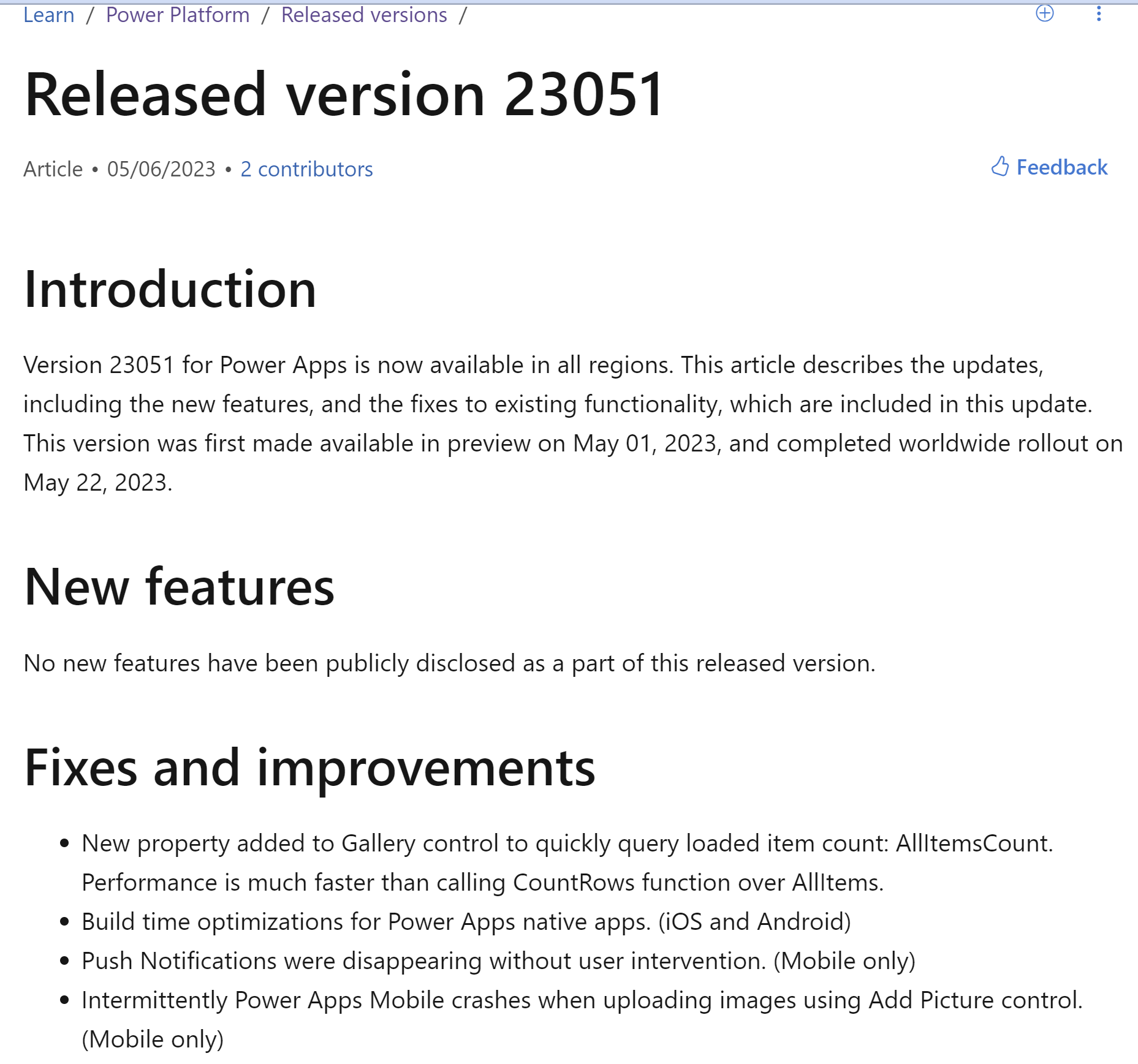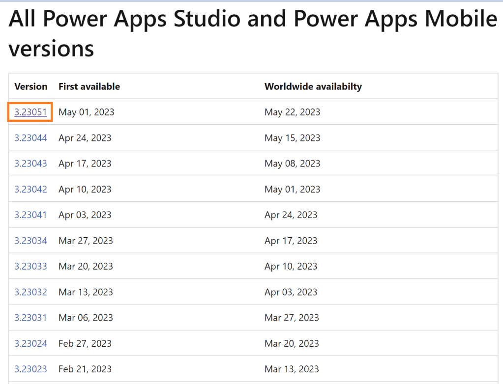 For example, I was looking for ‘AllItemsCount’ property of Gallery control which was introduced in 3.23051 version. If your Power Apps studio is on lower version, you would not get that property.