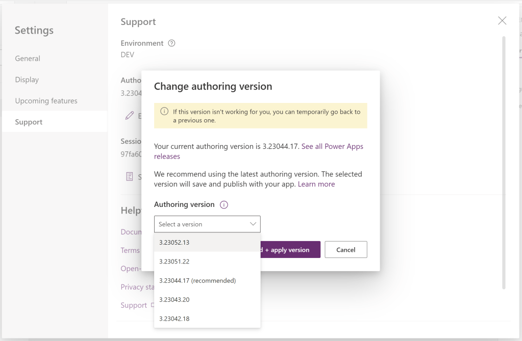 - Under ‘Support’ tab, you will find the ‘Authoring Version’ section.