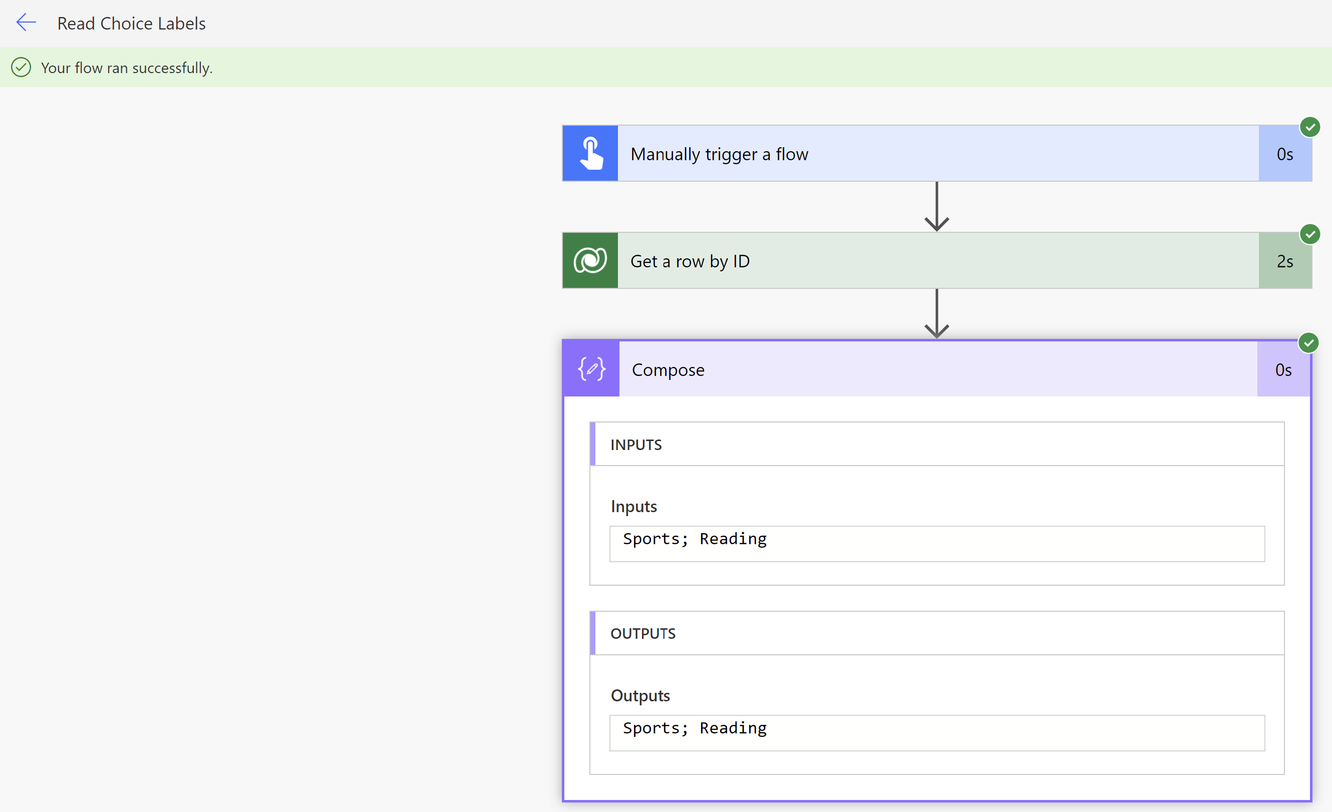- outputs(‘Get_a_row_by_ID’)?[‘body/raj_hobbies@OData.Community.Display.V1.FormattedValue‘]