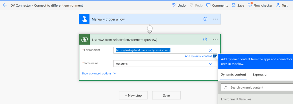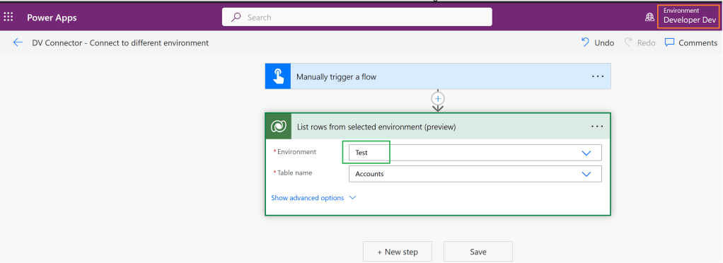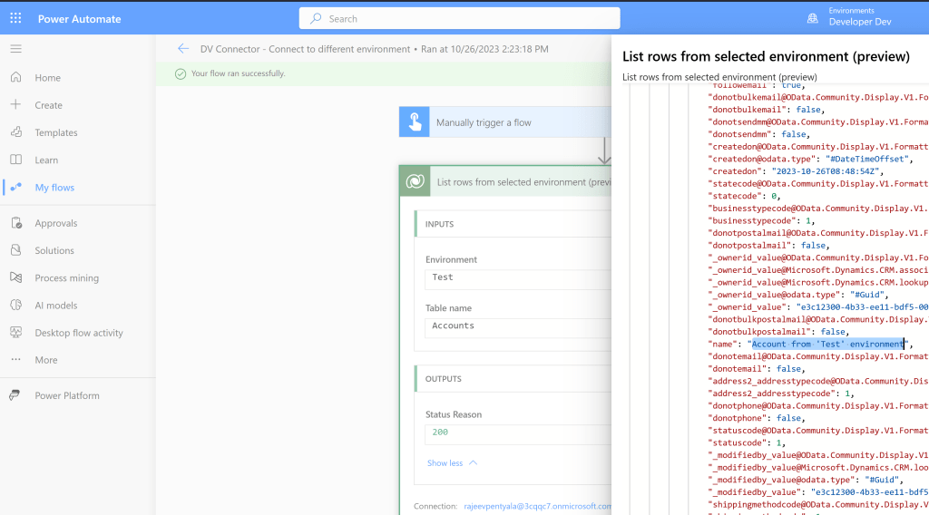 - To summarize, flow is being created on ‘Developer Dev’ environment and I am trying to fetch ‘Account’ records from ‘Test’ environment.