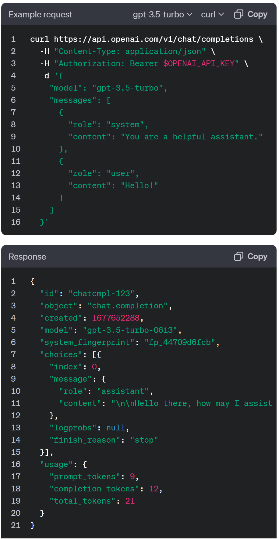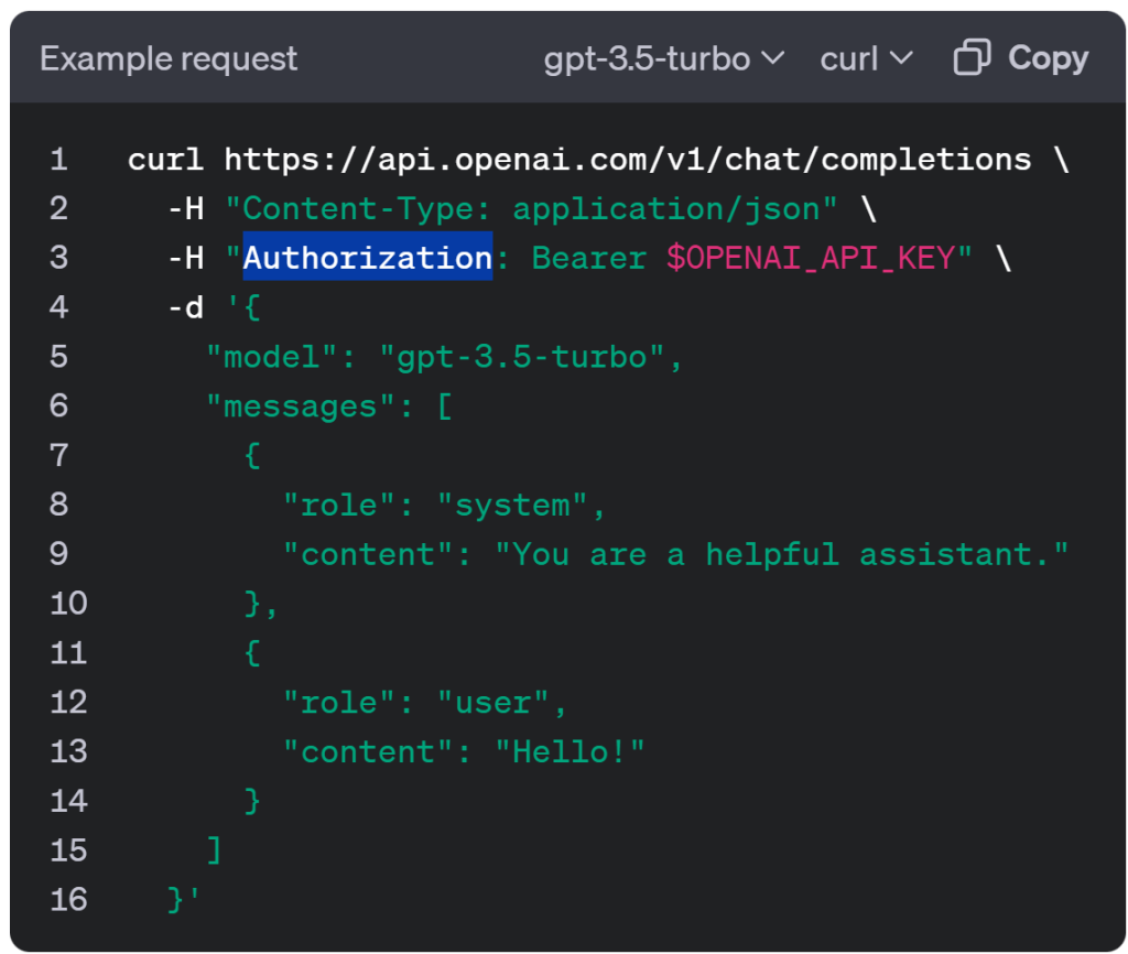- Authorization format is Bearer $OPENAI_API_KEY