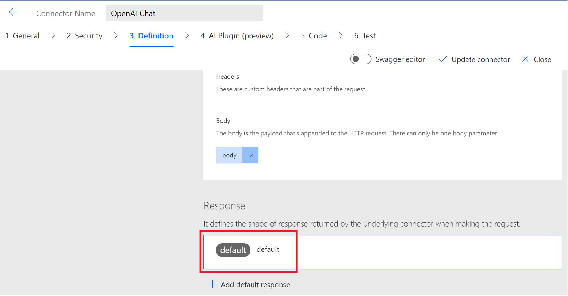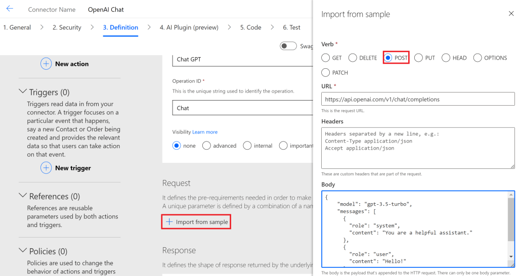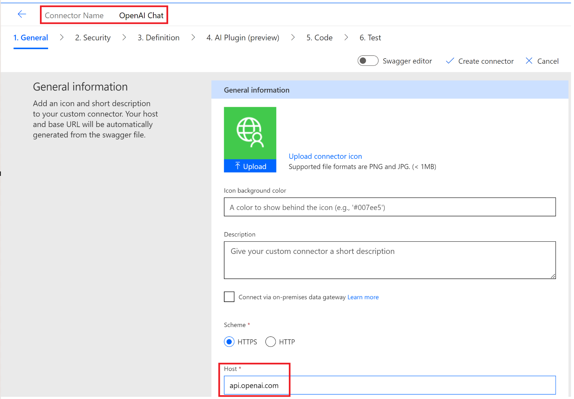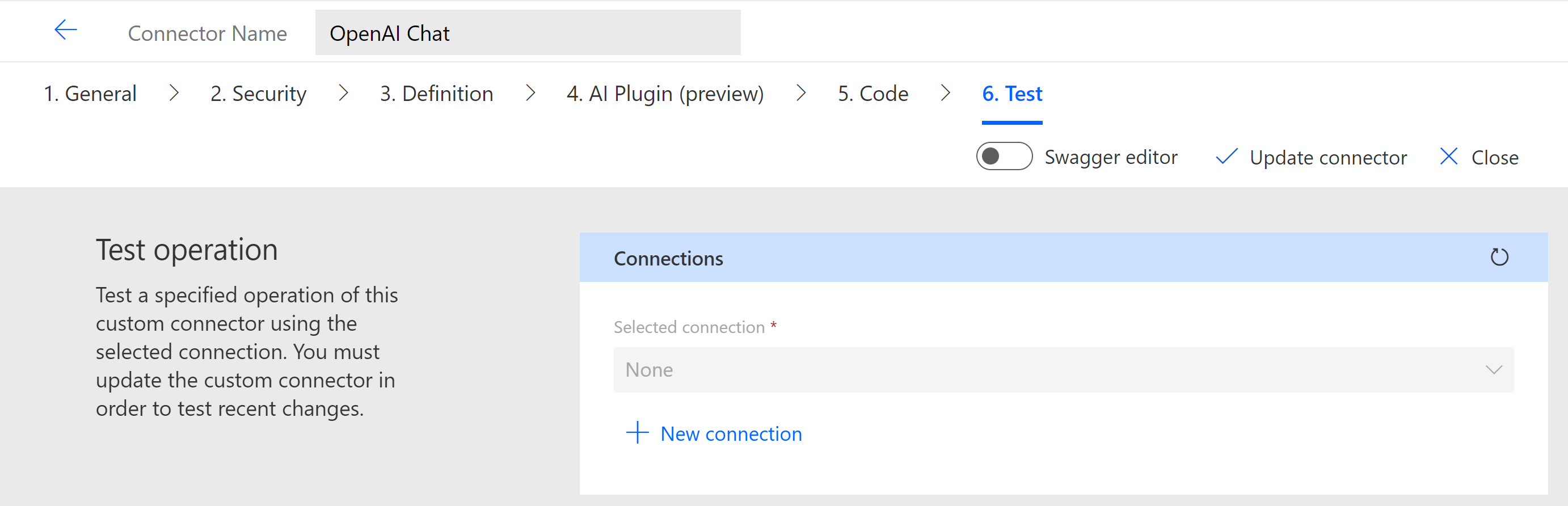 We will be creating a new Custom Connector using the OpenAI api.