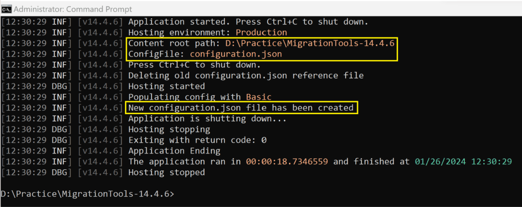 devopsmigration execute --config D:\Practice\MigrationTools-14.4.6\configuration.json